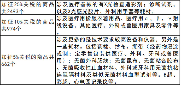 從國(guó)務(wù)院發(fā)布的公告來看,公告中提到的600億美元商品清單時(shí)發(fā)現(xiàn),涉及醫(yī)療器械的產(chǎn)品不僅有大型醫(yī)用設(shè)備儀器,同時(shí)也包括體外診斷試劑耗材!