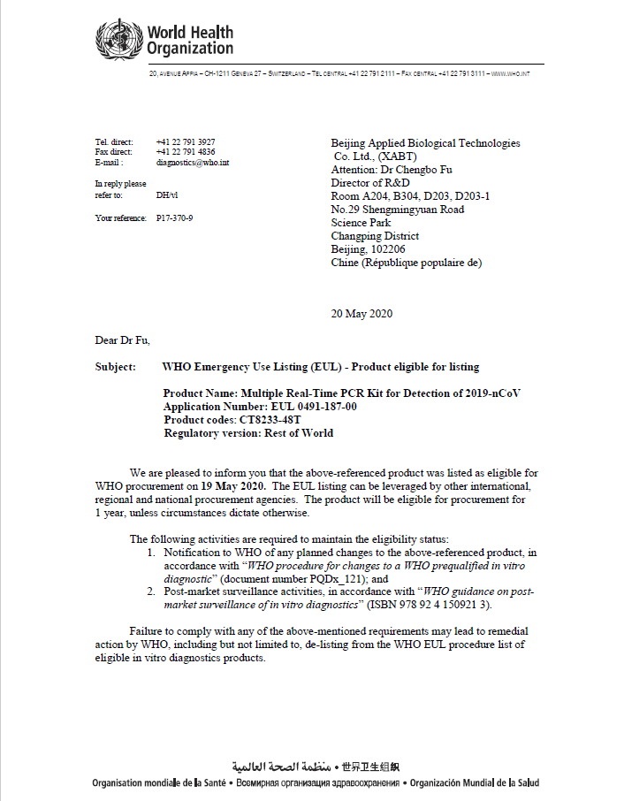 Beijing Applied Biological Technologies Co., Ltd., a molecular diagnostic enterprise specializing in the development of detection solutions for pathogenic microbes, is headquartered in the Zhongguancun Life Science Park in Beijing. There are two R&D centers and clean workshops that meeting the requirements of MGP, which pass the certification of ISO 13485 quality system. The total number of employees is more than 200, of which 60 are in the R&D team, and more than 60% possess master's degree or above. Our company has been rewarded the third prize of the Science and Technology Award issued by the Beijing Municipal Government and relevant national departments twice. We have successively undertaken four projects from Beijing Municipal Science and Technology Commission, major special projects of national "the 13th Five-year Plan" and other government projects. Encouragingly, the viral nucleic acid detection kits for 2019-nCoV developed in 2020 were selected as a major project of the Beijing Municipal Science and Technology Commission.