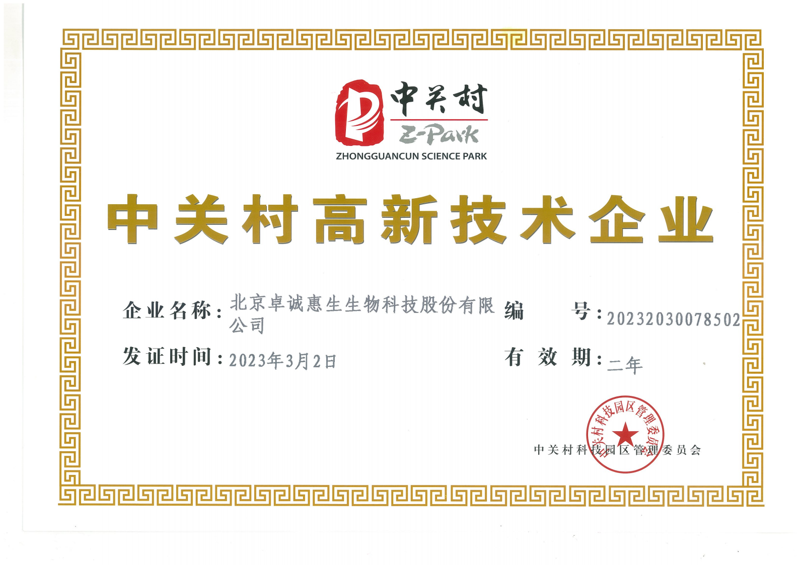 - 中關(guān)村高新技術(shù)企業(yè)證書(shū)