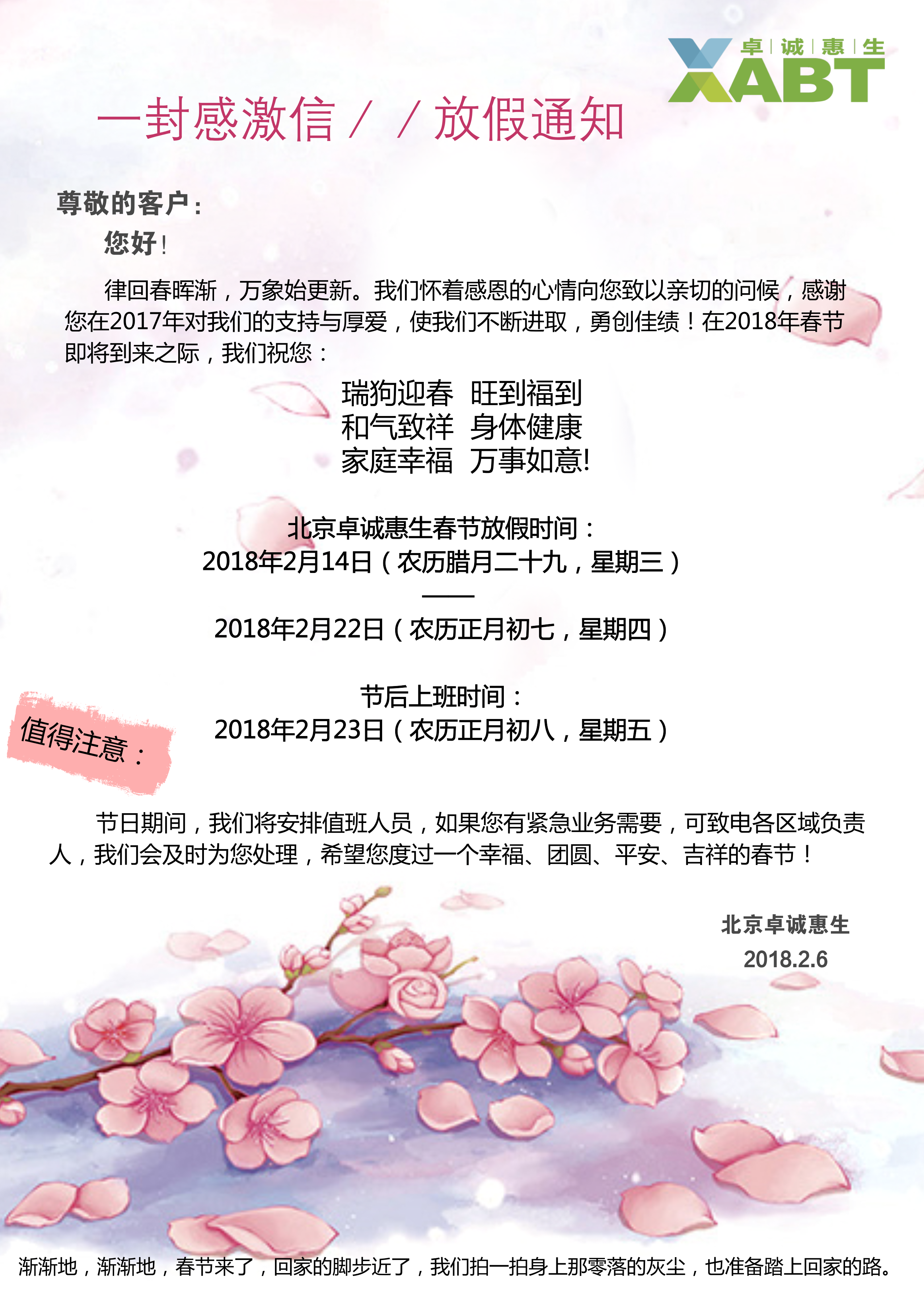 北京卓誠(chéng)惠生2018年春節(jié)放假通知